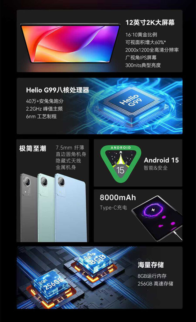 Tablet 12inch 8-cores Built-in 4G&3G&2G/GPS/FM/BLUETOOTH Android15